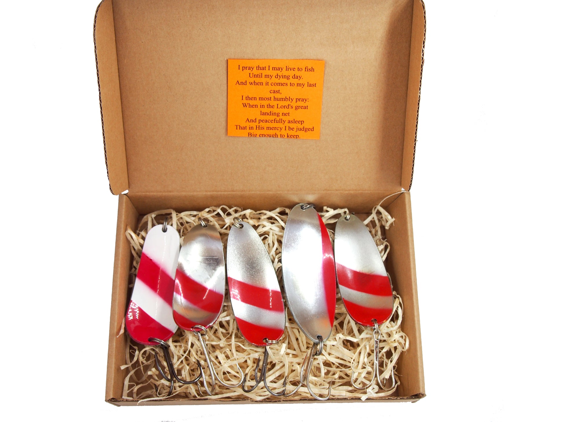 Our vibrant handmade pike spoons attract fish like no other. This 5-piece brass set is perfect for pike, bass, and salmon fishing, ensuring you reel in the big ones!
