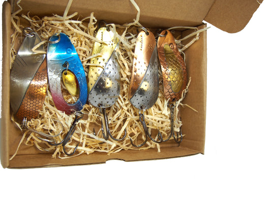 Traditional fishing spoon set, five-piece handmade fishing spoon set, gold pike spoons, copper salmon lure with treble hook