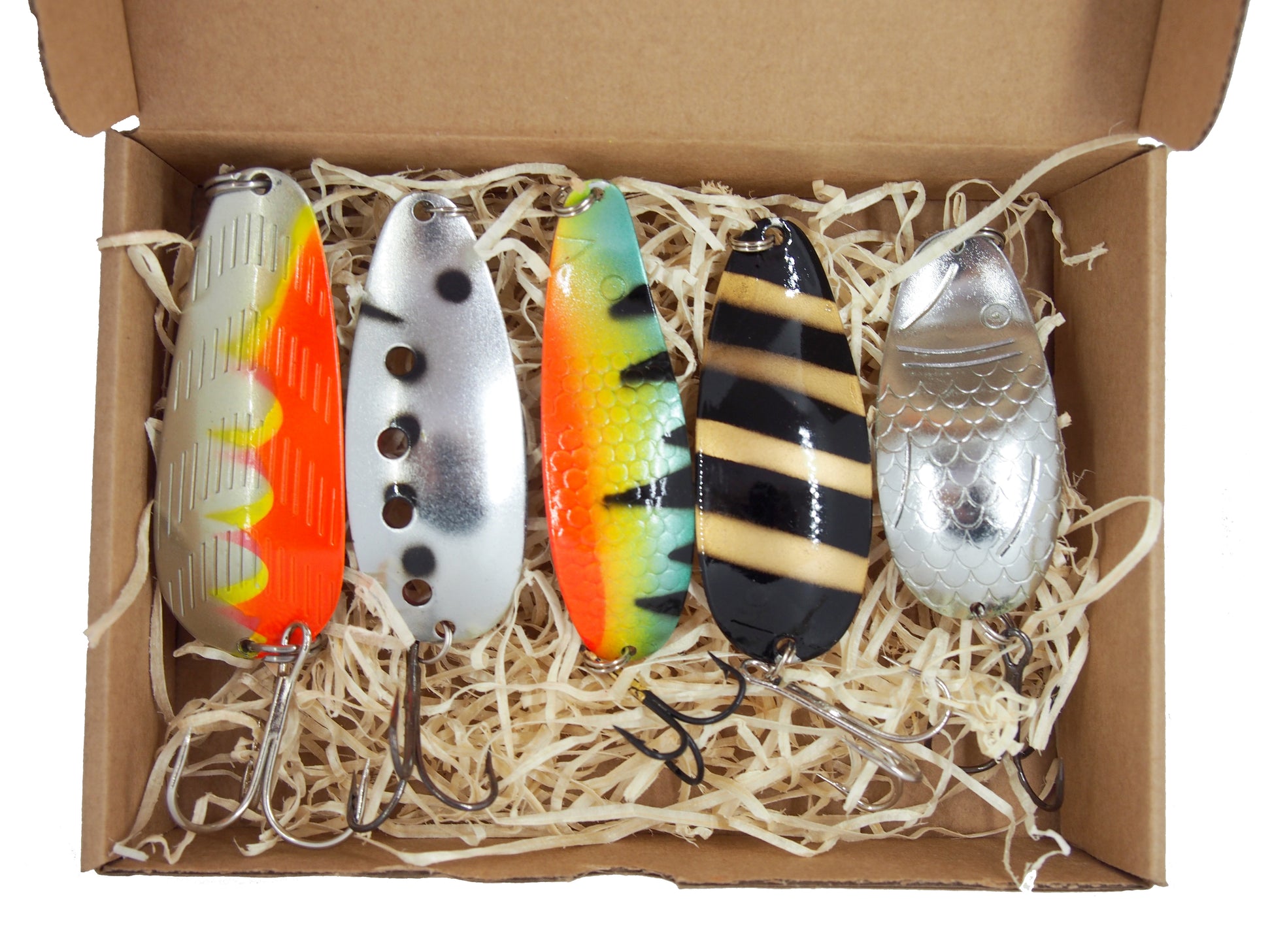 Classic Fishing Spoon Gift Set, Metal Lures for Pike & Salmon, Jura fishing spoons 5 pcs