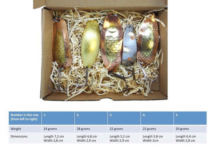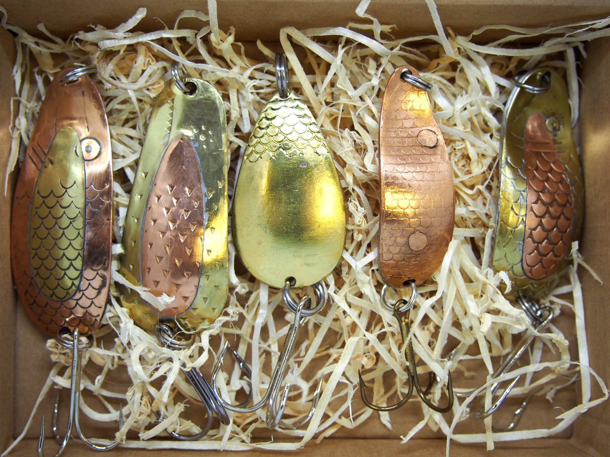 classic fishing spoon set, handmade fishing spoons, gold pike spoons, salmon lure copper with treble hook, 5 pieces