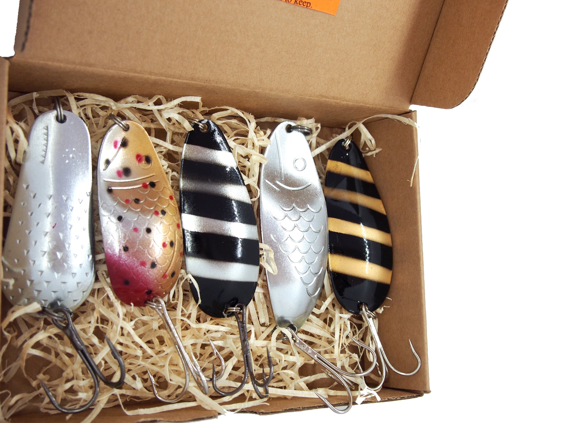 Our vibrant handmade pike spoons attract fish like no other. This 5-piece brass set is perfect for pike, bass, and salmon fishing, ensuring you reel in the big ones!