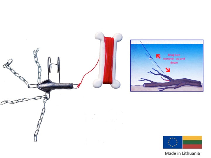 A lure retriever is an absolutely essential item to carry in your tackle box. It will save you so much money, time and heart ache by retrieving your favorite lures from those annoying snags. This lure retriever uses a specially designed shape. The main advantages of this unique design are: it’s quick, easy and simple to use. – It won’t damage monofilament or Gel spun fishing lines – It prevents the lure retriever twisting around the line and causing tangles – There are no sharp edges to damage your tackle The lure retriever is made from lead. The retriever has been designed with two key lure retrieving ideas in mind. The first principal is that of weight. The weight of the lure retriever, results in a 99% snag rate.