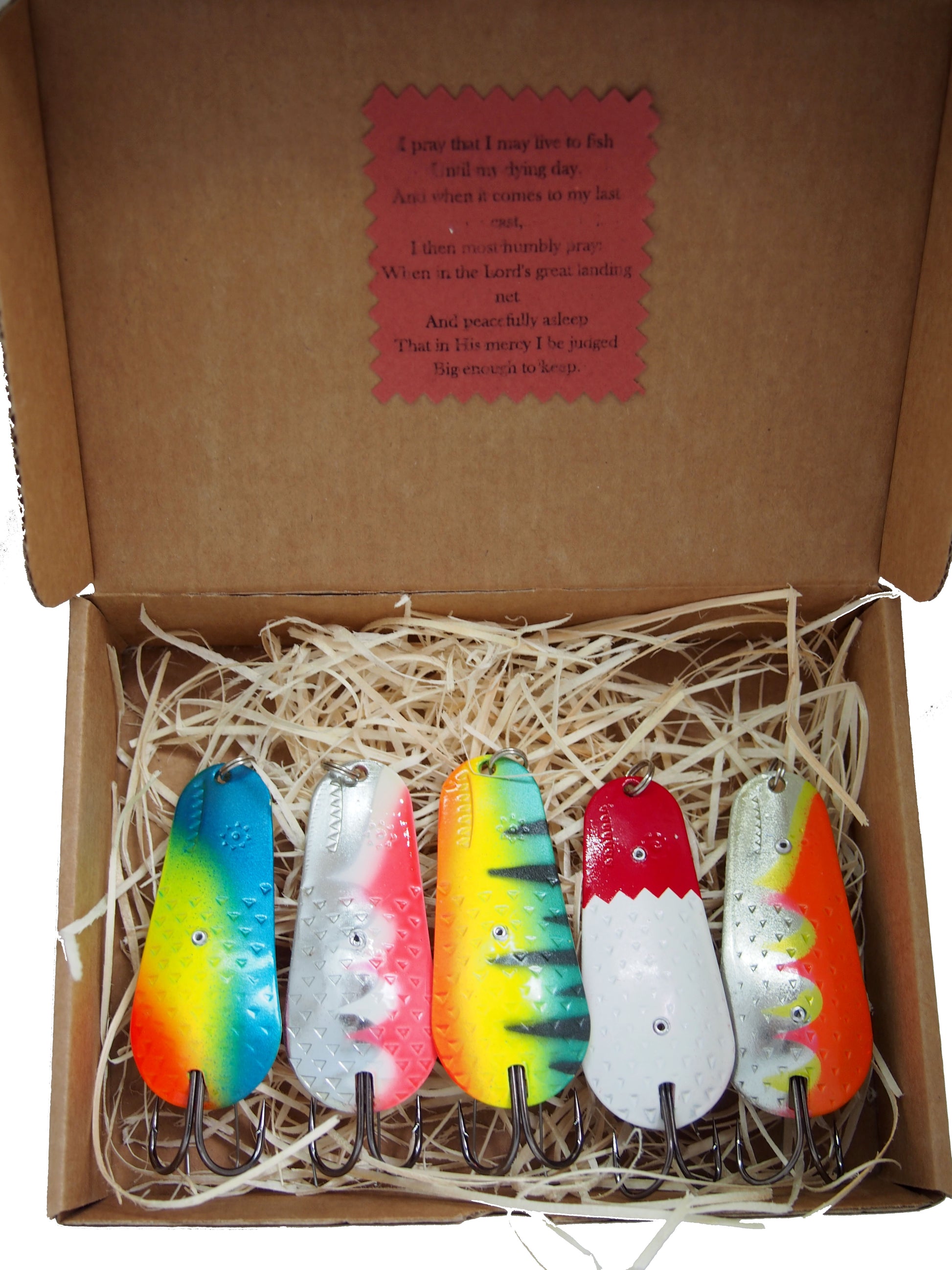 Add a touch of tradition to your fishing kit with our Hand-Painted Classic Spoon Set. These metal lures have been made with precision since 1956, featuring five distinct designs for targeting pike and salmon. Packaged in a sophisticated gift box, these spoons combine timeless appeal with unmatched functionality—perfect for serious anglers or as a collector’s piece.